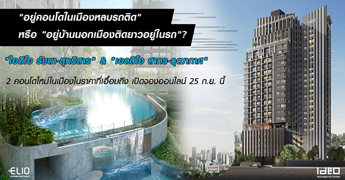 "ไอดีโอ รัชดา-สุทธิสาร" & "เอลลิโอ สาทร-วุฒากาศ" 2 คอนโดในเมืองในราคาที่เอื้อมถึง เปิดจอง 25 ก.ย. นี้