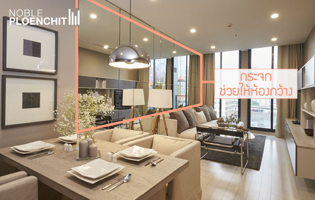 การใช้กระจกช่วย จะทำให้ห้องดูกว้างขึ้นอย่างเห็นได้ชัด