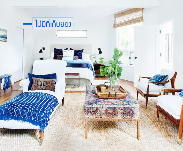 ขนาดเฟอร์นิเจอร์กับขนาดห้องดูสมดุลกันดี แต่ข้อเสียห้องนี้คือไม่มีเฟอร์นิเจอร์ หรือตู้เก็บของเลย
