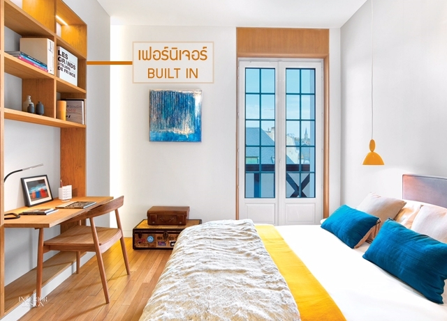 การใช้ตู้ Built-in ในมุมด้านซ้าย ประกอบกับการใช้สีโทนอ่อนๆ สามารถช่วยให้ห้องนี้ดูโล่งสบายตามากขึ้น