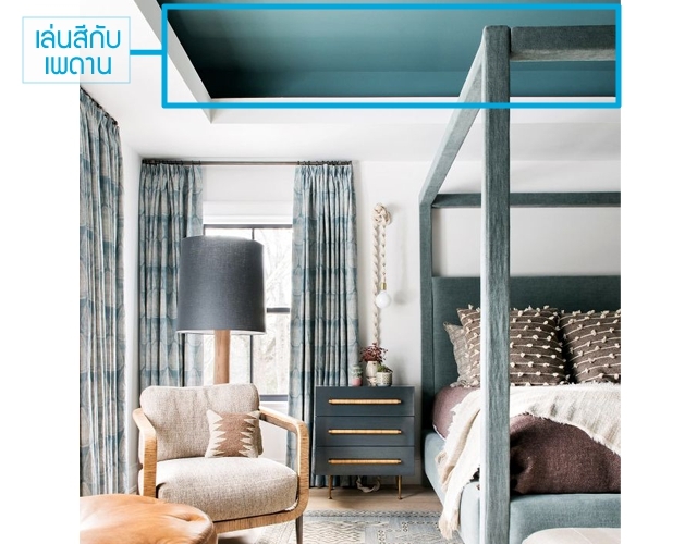บนเพดานก็สามารถเล่นสี หรือสร้างมิติในห้องได้