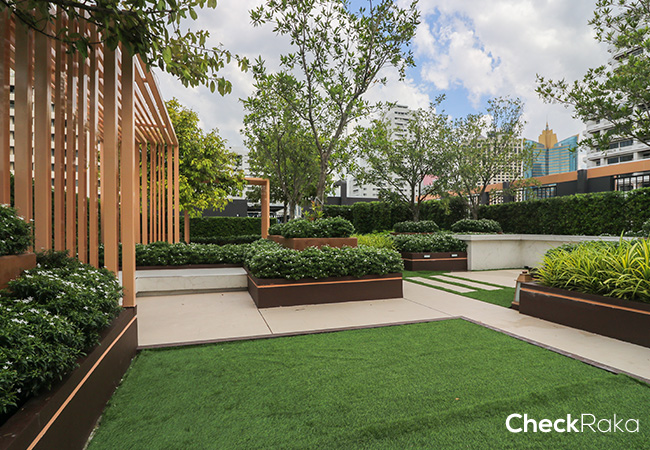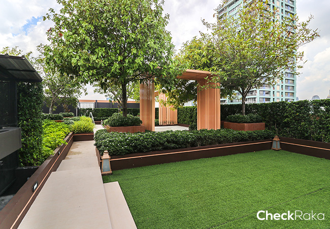 สวนหย่อมโครงการจะอยู่บนชั้นดาดฟ้า ขึ้นลิฟต์ไปที่ชั้น 8 แล้วขึ้นบันไดหนีไฟไปอีกชั้นหนึ่ง