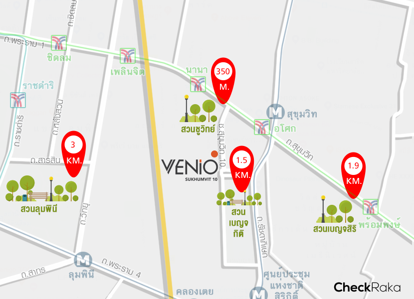 สวนสาธารณะที่อยู่ใกล้กับโครงการ เวนิโอ สุขุมวิท 10 นั้นมีถึง 3 สวนด้วยกัน และสามารถเดินทางไปได้อย่างสะดวก ซึ่งสวนเหล่านี้ได้แก่ สวนเบญจกิติ และสวนเบญจสิริ นอกจากนี้ยังสามารถเดินทางไปยังสวนลุมพินีได้อย่างสะดวกด้วยเช่นกันค่ะ สำหรับสวนชูวิทย์ เป็นสวนที่อยู่ใกล้กับโครงการที่สุด แต่น่าเสียดายตอนนี้ปิดให้บริการเข้าใช้งานไปแล้วค่ะ