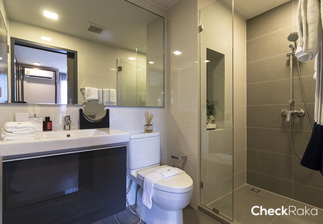 ด้านในห้องน้ำก็แบ่งกั้นให้อย่างเป็นสัดส่วน พร้อมใช้งานได้เลยค่ะ