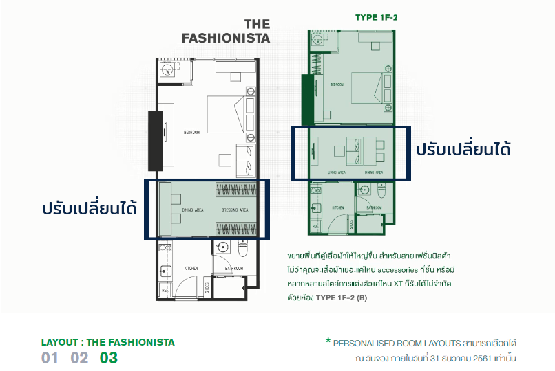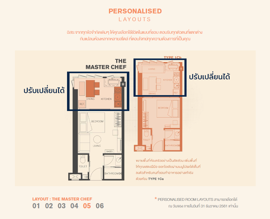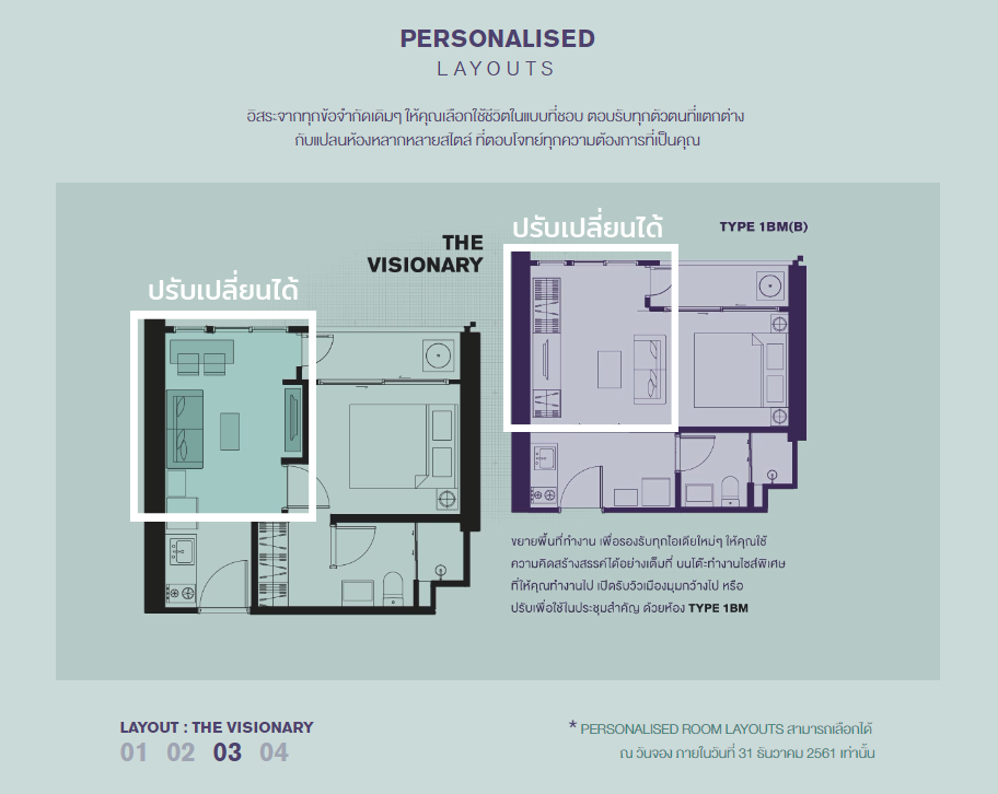 2. ใส่ใจความต้องการผู้บริโภค "Personalized Layout" เลือก Layout ห้องได้ ไม่ Fixed ตายตัว เท่าที่ติดตามข่าววงการบ้านคอนโดที่ผ่านมา จะเห็นการพัฒนาโครงการต่างๆ ส่วนมากออกมาในรูปแบบคล้ายๆ กัน อาจจะต่างบ้าง แต่ไม่ต่างกันมาก แนวคิดหลักน่าจะไม่ไกลจากคำว่า "โมเดิร์น" "ลักชัวรี่" หรือ "มินิมอล" ทั้งในด้านการออกแบบตัวอาคารภายนอก และการออกแบบ Layout ในห้อง ซึ่งมักจะมีให้เลือกอยู่ไม่กี่แบบ แต่เมื่อมุมมองด้านการออกแบบที่พยายามจะแตกแขนงออกไป เพื่อสร้างความแตกต่างและยิงให้ทะลุใจลูกค้ามากที่สุด แสนสิริจึงออกแบบ Layout ของห้องให้ปรับเปลี่ยนได้ตามความต้องการของผู้อยู่อาศัย (Customize) สร้างทางเลือกที่ตรงกับไลฟ์สไตล์ของลูกค้าที่สุด ซึ่งมีให้เห็นในโครงการ XT 3 ทำเล ได้แก่ XT พญาไท, XT เอกมัย และ XT ห้วยขวาง