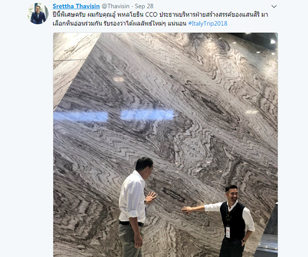ซึ่งการคัดเลือกหินอ่อนมาใช้ในแต่ละโครงการ ผู้บริหารลงมาเลือกด้วยตัวเอง ไม่ว่าจะในประเทศ หรือต่างประเทศก็ไปแสวงหาหินอ่อนที่มีสีสันสวยงาม ลวดลายใหม่ๆ ที่สร้างความหรูหรา และความแตกต่างได้เป็นอย่างดี