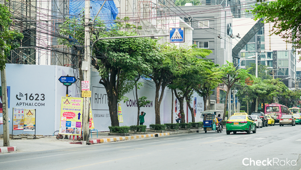ขยับเข้ามาอีกในเอกมัย มาเรื่อยๆ จนถึงเอกมัยซอย 1 ปากซอยที่เคยเป็นร้านอาหารเก่าแก่อย่าง "สบายใจไก่ย่าง" ตอนนี้กำลังจะกลายเป็น Rhythm Ekamai Estate แล้ว (ซึ่งเป็นโครงการที่ 2 ของ AP ต่อมาจาก Rhythm Ekamai ซึ่งอยู่ในช่วงต้นๆ ซอยกว่าจากสุขุมวิท) ตอนนี้กำลังสร้างสำนักงานขายกันอยู่ ถ้าให้เดาราคาน่าจะประมาณ 210,000 - 250,000 บาท/ตร.ม.