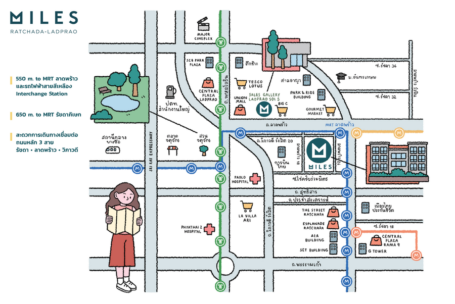 www.facebook.com/Thebelgravia ไมลส์ รัชดา-ลาดพร้าว จากค่าย เมเจอร์ ดีเวลลอปเม้นท์ คอนโดติดรถไฟฟ้า Interchange ใกล้ MRT สถานีลาดพร้าว และสถานีเชื่อมต่อโมโนเรลสายสีเหลืองเพียง 550 เมตร และใกล้รถไฟฟ้า MRT สถานีรัชดาภิเษก 660 เมตร มีรถบริการรับส่งเพิ่มความสะดวกและปลอดภัยระหว่างตัวโครงการกับสถานีรถไฟฟ้า โครงการ Low-Rise สูง 8 ชั้น 1 อาคาร 205 ยูนิต พื้นที่ใช้สอย 25-40 ตร.ม. ห้องแต่ง ครบแบบ Fully furnished โดย furniture ออกแบบพิเศษเฉพาะโครงการ พร้อม Smart Door Lock, ครัวปิดป้องกันกลิ่นรบกวน พร้อมชุดครัว Top Counter หิน Quartz, มีระบบ Home Automation และ Automatic Toilet Seat ทุกยูนิต