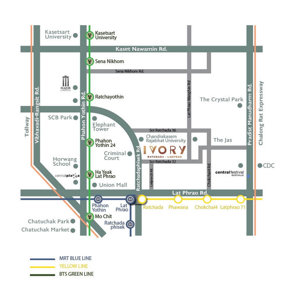 คอนโดติดรถไฟฟ้า MRT รัชดา-ลาดพร้าว จุดตัดสายสีน้ำเงินและสายสีเหลือง ปี 64