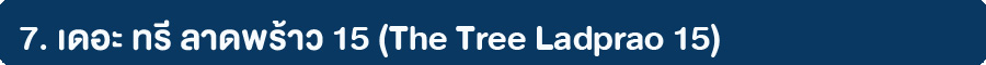เดอะ ทรี ลาดพร้าว 15 จาก พฤกษา เรียลเอสเตท เป็นโครงการ Low-Rise ความสูง 8 ชั้น 1 อาคาร มีความเป็นส่วนตัว เพียง 214 ยูนิต รูปแบบห้องพักอาศัย 4 แบบ ได้แก่ Superior, Deluxe, Premier และ Suite ขนาดตั้งแต่ 22.30 - 30.30 ตร.ม. การออกแบบด้วยสถาปัตยกรรมที่ร่วมสมัยสไตล์นีโอคลาสสิก สู่การออกแบบที่ผสมผสานเข้ากับไลฟ์สไตล์ปัจจุบัน สิ่งอำนวยความสะดวกที่มากถึง 2 โซน คือ ในบริเวณอาคารพักอาศัย และคลับเฮาส์ที่แยกออกจากตัวอาคารใกล้ห้างสรรพสินค้า เซ็นทรัลลาดพร้าว และ Union Mall