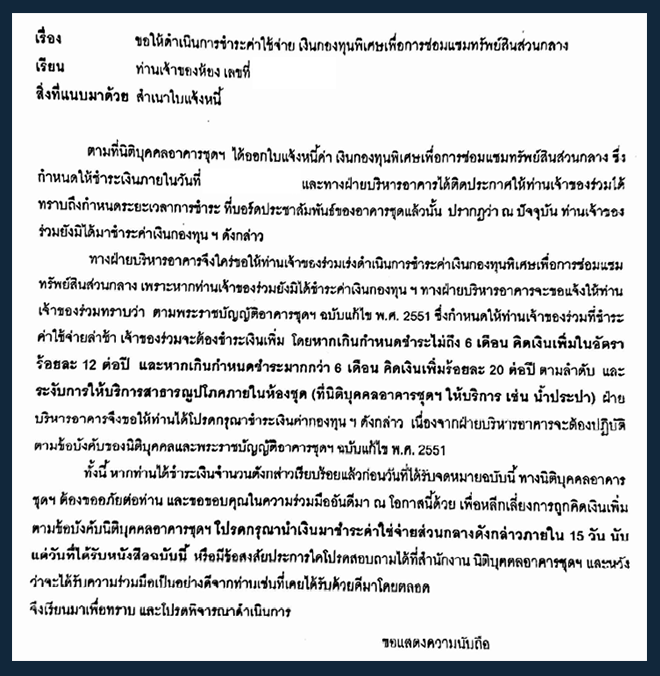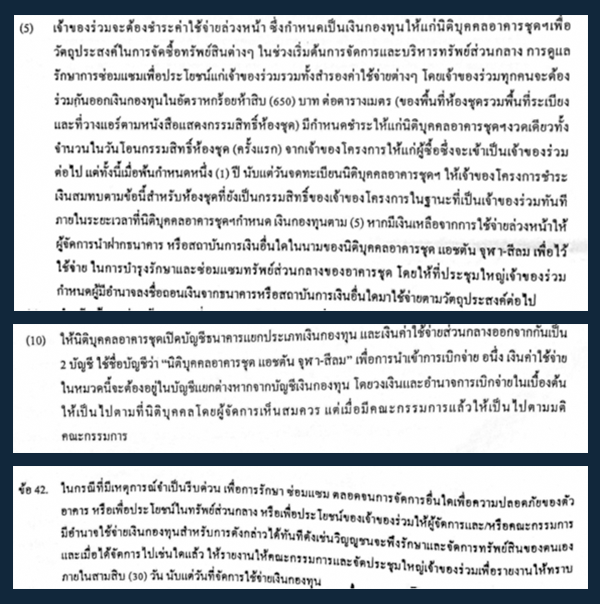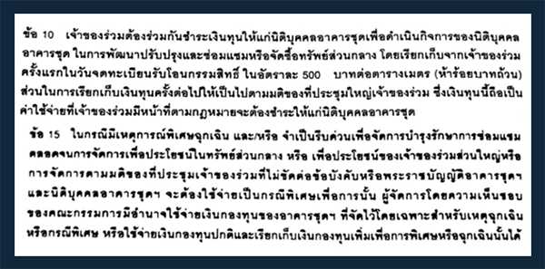 "เงินกองทุน" ในข้อบังคับของคอนโดแห่งหนึ่งแถวราชเทวี