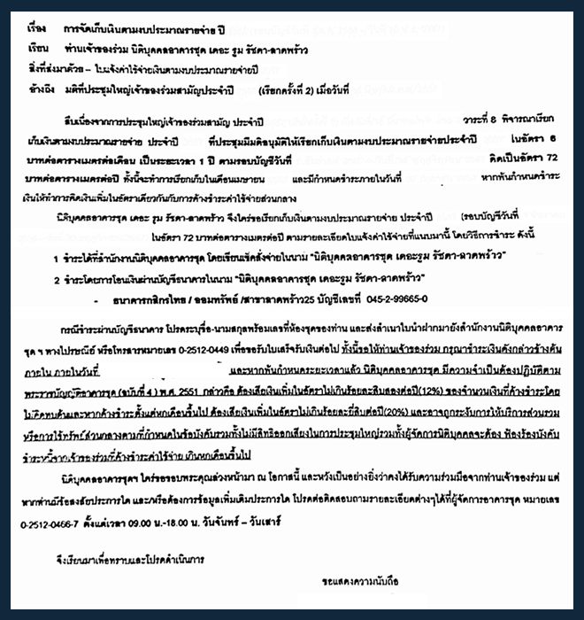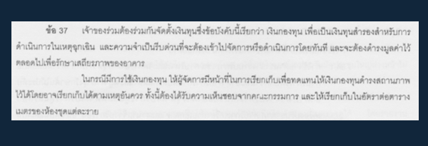 "เงินกองทุน" ในข้อบังคับของคอนโดแห่งหนึ่งบนถนนแถวลาดพร้าว
