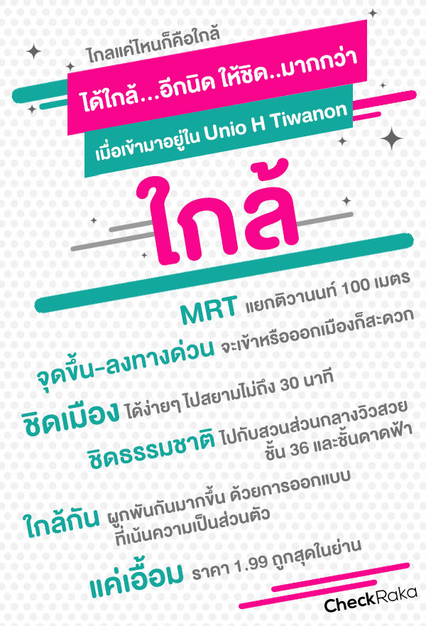 ไกลแค่ไหนก็คือใกล้ : "Unio H Tiwanon" MRT สถานีแยกติวานนท์ อยู่หน้าโครงการ!