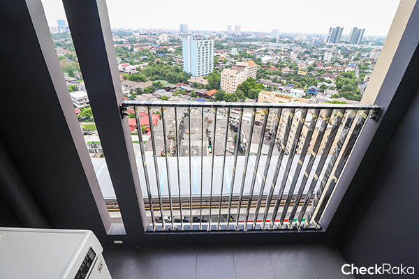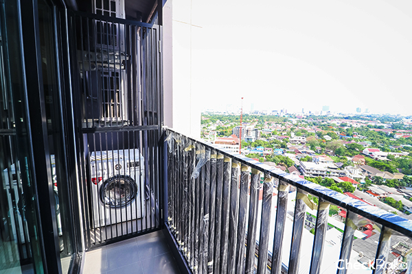 พื้นที่ระเบียงเก็บคอมเพรสเซอร์แอร์และเครื่องซักผ้า มีรั้วเหล็กกันตกให้