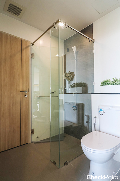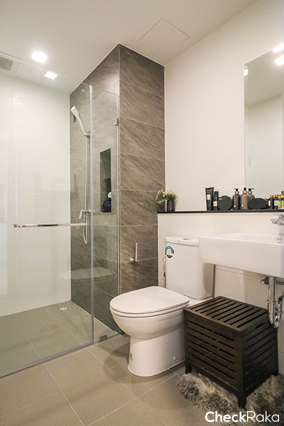 ห้องน้ำเข้าได้ 2 ทาง จากทางห้องนอนและห้องนั่งเล่น