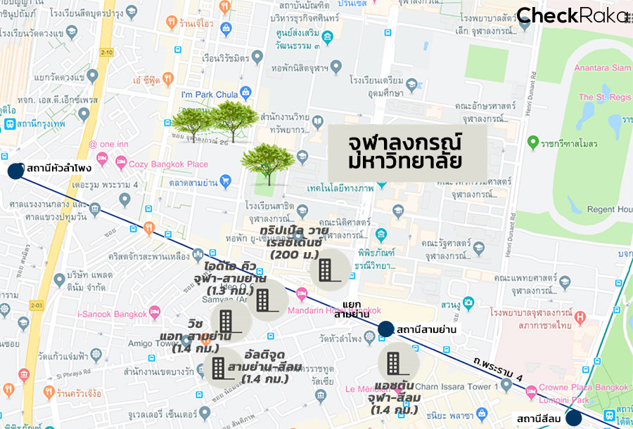 | ไอดีโอ คิว จุฬา-สามย่าน (สร้างเสร็จ 2559) | Studio (22 ตร.ม.) | 16,000 บ./เดือน |