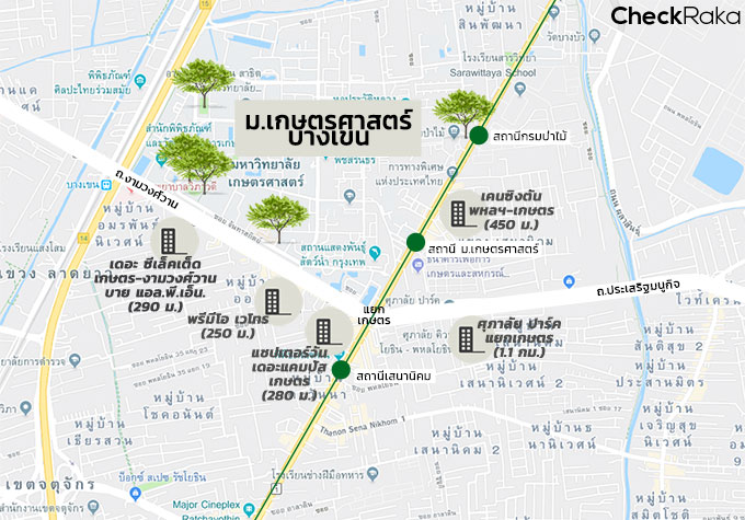 | แชปเตอร์วัน เดอะแคมปัส เกษตร (สร้างเสร็จ 2558) | Studio (23 ตร.ม.) | 11,000 บ./เดือน |