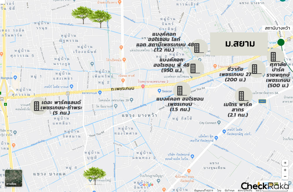 มาดูโซนรถไฟฟ้าสายสีเขียว (ฝั่งสีลม) กันบ้างค่ะ สำหรับ "มหาวิทยาลัยสยาม" อยู่ไม่ไกลจากสถานีบางหว้า สถานีปลายทางของรถไฟฟ้าสายสีลมในปัจจุบัน การเดินทางเข้าเมืองต้องบอกว่าสะดวกสบายมากๆ ค่ะ