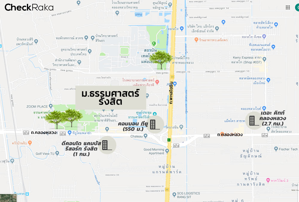 ยังอยู่กันที่รังสิตค่ะ ไปต่อที่ "มหาวิทยาลัยธรรมศาสตร์ ศูนย์รังสิต" ย่านนี้ก็ถือว่าครบค่ะ เพราะในธรรมศาสตร์เองก็มีโรงพยาบาล รวมถึงคอมมูนิตี้มอลล์ชิลล์ๆ แถมยังเดินทางง่าย ในอนาคตยังมีรถไฟฟ้าสายสีแดงผ่านด้านหลังมหาวิทยาลัยด้วย