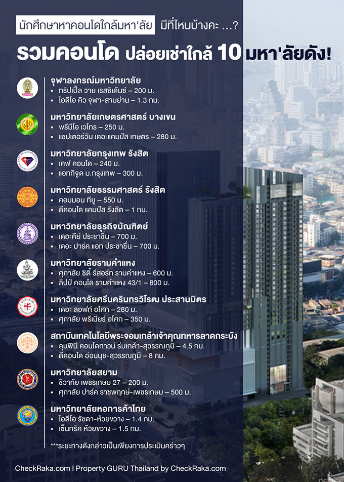 นักศึกษาหา "คอนโดใกล้มหา'ลัย" มีที่ไหนบ้างคะ ...? รวมคอนโดปล่อยเช่าใกล้ 10 มหา'ลัยดัง!