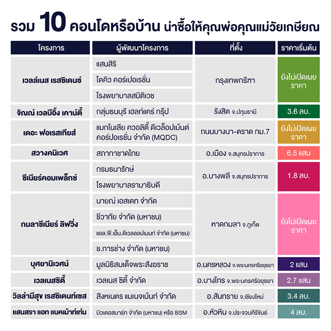 รวม 10 คอนโดหรือบ้านน่าซื้อให้คุณพ่อคุณแม่สูงอายุวัยเกษียณ