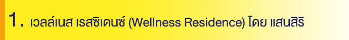 คอนโดมิเนียมของ เวลล์เนส เรสซิเดนซ์ เป็นโครงการคอนโดมิเนียม 4 อาคาร รวมมูลค่า 2,400 ล้านบาท ที่นอกจากจะส่งเสริมการใช้ชีวิตที่ให้ความสำคัญในเรื่องสุขภาพแล้ว ยังจะเป็นการสร้างชุมชน Wellness Community เน้นการดูแลสุขภาพแบบครบวงจรอีกด้วย