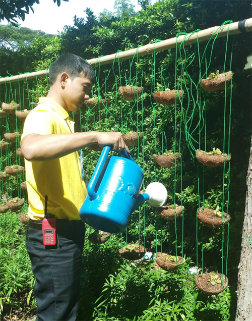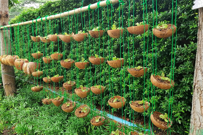 ฝ่ายจัดการฯ โครงการ เรน ชะอำ-หัวหิน เปลี่ยนแปลงพื้นที่ว่างให้เป็นแปลงผักโดยใช้วัสดุธรรมชาติอย่างกะลามะพร้าวมาดัดแปลงเป็นกระถาง