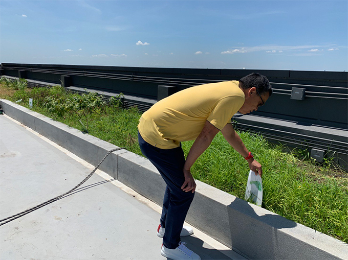 คุณเศรษฐา ทวีสิน กรรมการผู้จัดการใหญ่ บริษัท แสนสิริ จำกัด (มหาชน) ลงสำรวจพื้นที่ปลูกผักสวนครัวในโครงการ