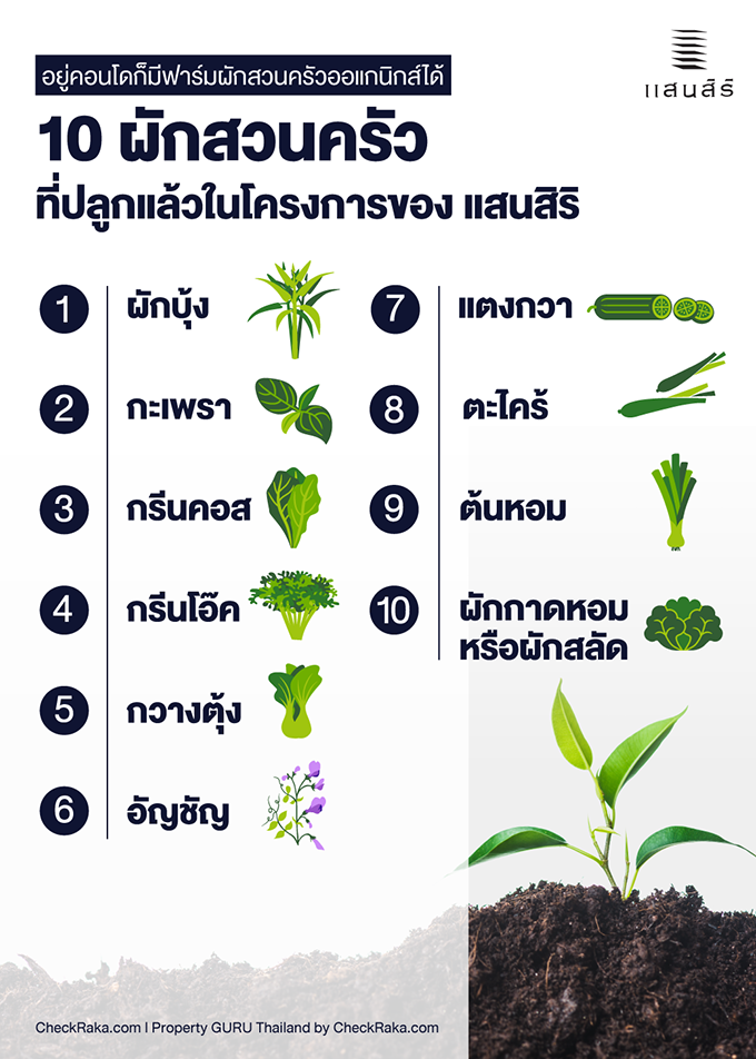 จริงๆ แล้วนอกจากที่จะปลูกผักบนพื้นที่ส่วนกลางของคอนโดแล้ว เรายังสามารถปลูกผักภายในห้องของตัวเองได้ด้วยนะคะ เช่นที่ระเบียงหรือที่ใกล้ๆ หน้าต่างเพื่อให้โดนแสง แต่อาจจะต้องระวังหล่นไปชั้นล่างด้วย Sansiri Backyard ถือเป็นโครงการริเริ่มที่ดีและน่าสานต่อ เพราะเป็นกิจกรรมที่ทำได้ง่าย และเราบอกเสมอว่าปลูกผักมักจะสุขใจและสุขกายด้วย ใครที่ยังไม่เคยลองปลูกต้นไม้หรือผักก็อยากแนะนำให้ปลูกดูค่ะ ทำให้เรารู้จักการรอคอยเพื่อที่จะเห็นการเจริญเติบโตของผักที่เราปลูก อีกทั้งยังสวยงามแถมยังกินได้อีกด้วย