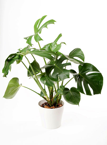 พลูแฉกหรือมอนสเตอร่า เป็นไม้เลื้อย มีใบสวยงามเป็นเอกลักษณ์ฉีกๆ แหว่งๆ แบบนี้ล่ะค่ะ ถูกใจสาย Minimal เลย ชอบความชื้น เหมาะกับการปลูกในร่มและบริเวณที่มีแสงแดดอ่อนๆ วางไว้ใกล้ๆ หน้าต่างดีที่สุด มีคุณสมบัติในการฟอกอากาศเช่นกันค่ะ