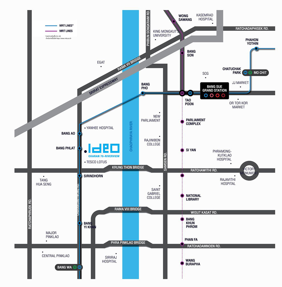 ไอดีโอ จรัญฯ 70-ริเวอร์วิว (Ideo Charan 70-Riverview) คอนโดติดรถไฟฟ้า เพียง 295 เมตรจาก MRT สถานีบางพลัด ตอบโจทย์ทุกไลฟ์สไตล์ เชื่อมต่อทุกการเดินทาง ทั้งรถไฟฟ้า ท่าเรือโดยสาร และทางด่วน ส่วนกลางครบ อาทิ สระว่ายน้ำระบบเกลือ ยาว 44 เมตร มีทั้ง Lagoon area, Jacuzzi zone รวมไปถึงสระเด็ก และ Steam and sauna แยกชายหญิง, PANORAMIC WORK LOFT และส่วนกลางวิวแม่น้ำ พร้อมแอคทีฟโซน ลู่วิ่งจักรยาน เวทเทรนนิ่ง และ ฟรีเวท ไปกับวิว Sky Panoramic บนความสูง 122 เมตร ได้ตลอด 24 ชั่วโมง