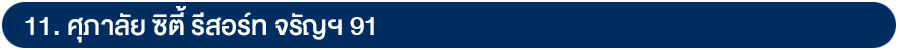 ศุภาลัย ซิตี้ รีสอร์ท จรัญฯ 91 (Supalai City Resort Charan 91) เป็นคอนโดสไตล์รีสอร์ท บนทำเลจรัญฯ 91 ใกล้รถไฟฟ้า MRT สถานีบางอ้อ เพียง 190 เมตร เพียง 2 สถานี เชื่อมต่อกับ Interchange สายสีม่วง สถานีเตาปูน และ เพียง 3 สถานี เชื่อมต่อกับ Interchange สายสีแดงอ่อน สายสีแดงเข้ม และแอร์พอร์ตลิงก์สถานีบางซื่อ ใกล้จุดขึ้น-ลงทางด่วน ด่านบางกรวย และใกล้ท่าเรือข้ามฟากวัดอาวุธวิกสิตาราม ใกล้แหล่งช้อปปิ้ง อาทิ แม็คโคร จรัญฯ, เซ็นทรัล ปิ่นเกล้า
