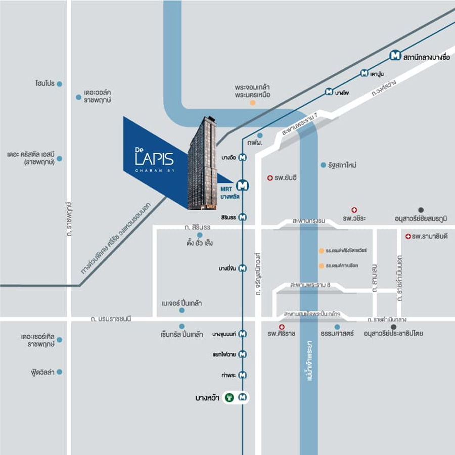 เดอ ลาพีส จรัญ 81 (De Lapis Charan 81) ทำเลดีติดถนนจรัญสนิทวงศ์ เพียง 5 นาที ถึงจุดขึ้น-ลงทางด่วนพิเศษศรีรัช - วงแหวนรอบนอก