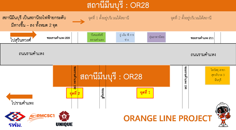 - ทางขึ้นลงจุดที่ 2 ตั้งอยู่บริเวณซอยรามคำแหง 112/1