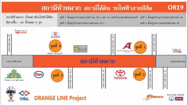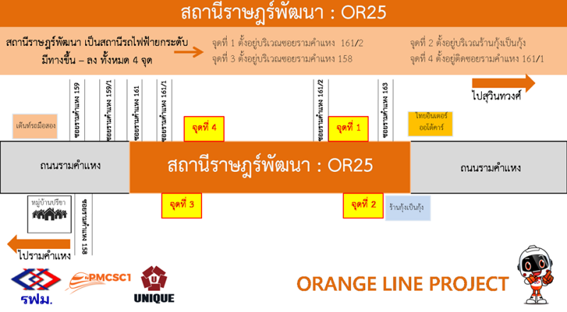 - ทางขึ้นลงจุดที่ 4 ตั้งอยู่บริเวณซอยรามคำแหง 161/1