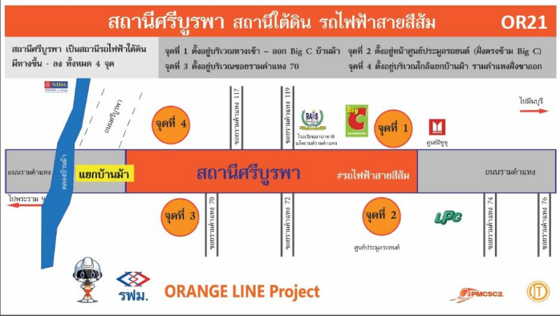 - ทางขึ้นลงจุดที่ 4 ตั้งอยู่บริเวณซอยรามคำแหง 69