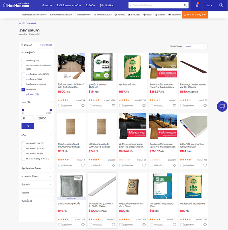 เว็บนี้เป็น Merketplace แพลตฟอร์มซื้อ-ขายวัสดุและสินค้าตกแต่งบ้านออนไลน์ พร้อมบริการติดตั้งครบวงจร ถือว่าเป็นเว็บไซต์ที่ใช้ง่ายมากๆ เลยล่ะครับ เช่น ถ้าหากคุณจะซื้อพื้นลามิเนตก็เลือกลายและยี่ห้อที่ชอบ จากนั้นก็สามารถคำนวณพื้นที่เองได้ เพื่อที่จะได้รู้ว่าควรซื้อกี่กล่อง และถ้าหากอยากได้ช่างก็สามารถตรวจสอบพื้นที่บริการ แถมมีตัวเลขให้เห็นด้วยว่าจะเสียค่าบริการกี่บาท