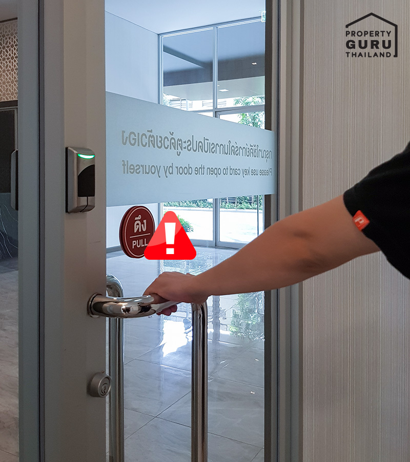 จุดเสี่ยงที่เลี่ยงไม่ได้เลยก็คือ ประตูทางเข้าคอนโดนี่แหละค่ะ เป็นจุดที่ต้องระวัง หลังจากที่ใช้มือจับราวประตูแล้ว เพื่อความปลอดภัย อย่าเพิ่งเอามือมาจับใบหน้า ตา จมูก ปาก หรือจับอาหารเข้าปาก ให้ล้างมือด้วยน้ำเปล่าตามหลักการล้างมือ หรือล้างด้วยเจลแอลกอฮอล์ก่อนนะคะ