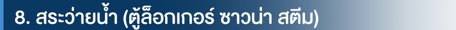 ช่วงนี้เรียกว่าต้องงดสระว่ายน้ำเลยค่ะ รวมไปถึงพวกซาวน่า สตีม และตู้ล็อกเกอร์ที่อยู่ในห้องน้ำของสระว่ายน้ำด้วยเช่นกัน เรียกว่าเป็นพื้นที่แห่งความเสี่ยงของการแพร่กระจายเชื้อโรคได้ง่ายเลยค่ะ อย่างไรก็ตามนิติบุคคลของหลายๆ โครงการก็ออกมาตรการงดใช้พื้นที่เสี่ยงเหล่านี้เป็นการชั่วคราวด้วยเหมือนกันค่ะ