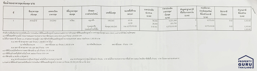 ตัวอย่างจริงการคำนวณภาษีคอนโด Sathorn House