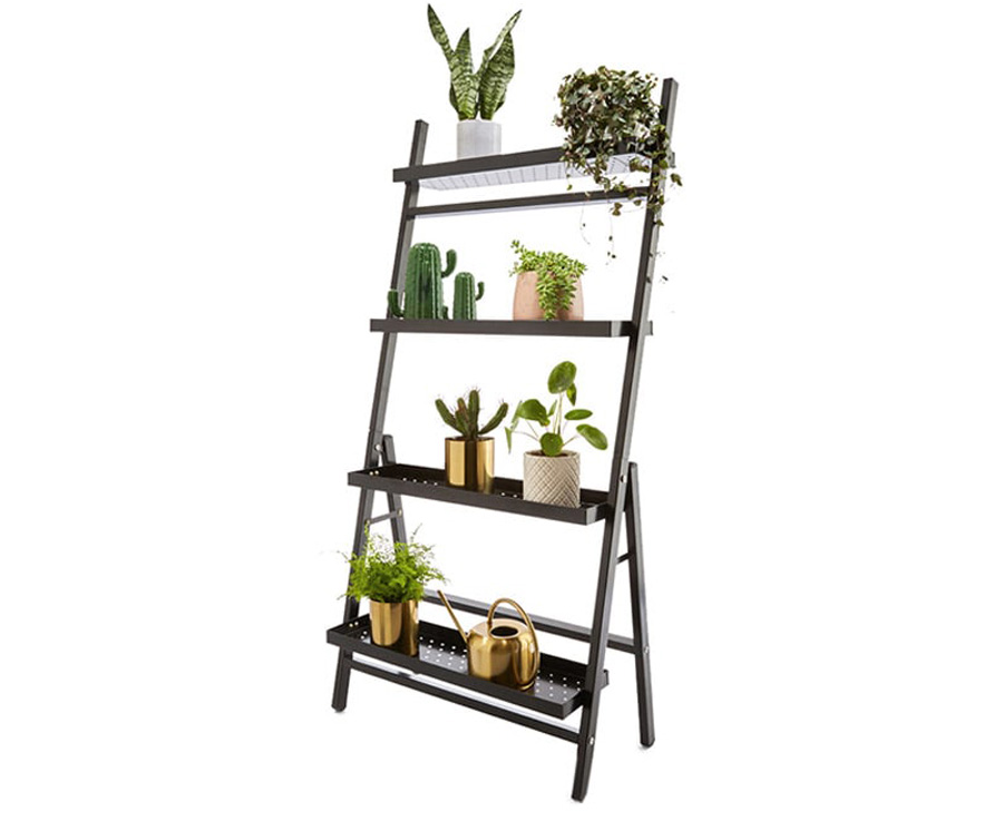 ชั้นวางต้นไม้จากแบรนด์ Anko มีขายที่ โรบินสันออนไลน์ โครงสร้างทำจากเหล็กคุณภาพดี แข็งแรง และทนทาน รับน้ำหนักได้สูงสุด 3 กิโลกรัมต่อชั้น การออกแบบก็โปร่งโล่ง เหมาะกับวางต้นไม้ให้อากาศถ่ายเทได้สะดวกเลยทีเดียวค่ะ