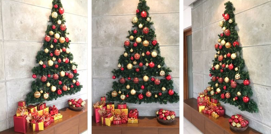 การทำต้นคริสต์มาสแบบติดผนังนอกจากจะได้ความสวยงามแล้วยังช่วยประหยัดพื้นที่ได้ดีอีกด้วย