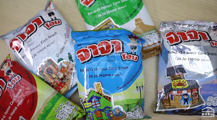"ขนมจาจาโฮม" คือขนมข้าวโพดอบกรอบรสบาร์บีคิว ภายในซองมีบ้านหลากหลายรูปแบบให้สะสมมากกว่า 100 แบบ ซึ่งจะมีแบบบ้านออกมาใหม่เรื่อยๆ เรียกว่าเป็นขนมในตำนานที่ยังมีลมหายใจให้เด็กๆ ได้เล่นกันตั้งแต่อดีตจนถึงปัจจุบันนี้