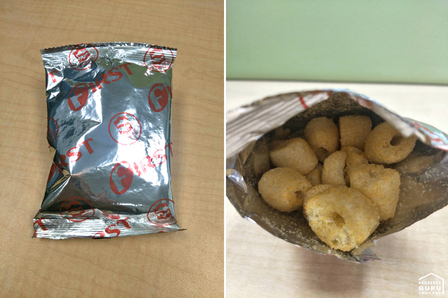 เริ่มจากซองขนมที่บรรจุแยกออกจากตัวของเล่นเพื่อความสะอาดถูกสุขอนามัย หน้าตาขนมก็จะประมาณนี้ ถ้านึกไม่ออกว่ารสชาติเป็นยังงัยก็ให้นึกถึง "ขนมคอร์นพัฟฟ์" มีความกรุ๊บกรอบหวานนิดๆ เค็มหน่อยๆ คล้ายกันเลย