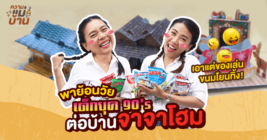 ความแม่บ้าน EP. นี้เราจะพาทุกคนย้อนวัยกลับไปเป็นเด็กกันอีกครั้ง..หากนึกถึงสมัยประมาณยุค 90'S ยุคที่เด็กๆ มักจะเล่นกระโดดยาง เป่ากบ ดีดลูกแก้ว ของเล่นยังไม่เยอะและหลากหลายเหมือนสมัยนี้ เรียกว่าเด็กชาวบ้านร้านตลาดทั่วไปการได้ของเล่นที่แถมมาในซองขนมถือเป็นของเล่นที่ดี เจ๋ง และอยากได้มาก (หรือแค่แม่บ้านเองหว่า 555+) เอาเป็นว่าเด็กๆ หลายคนชื่นชอบละกัน... และหนึ่งในขนมยอดฮิตที่เคยขอเงินแม่ไปซื้อมาเล่นต้องมีเจ้านี่เลย "ขนมจาจาโฮม" ขนมที่มีบ้านกระดาษมาเป็นของแถม!!