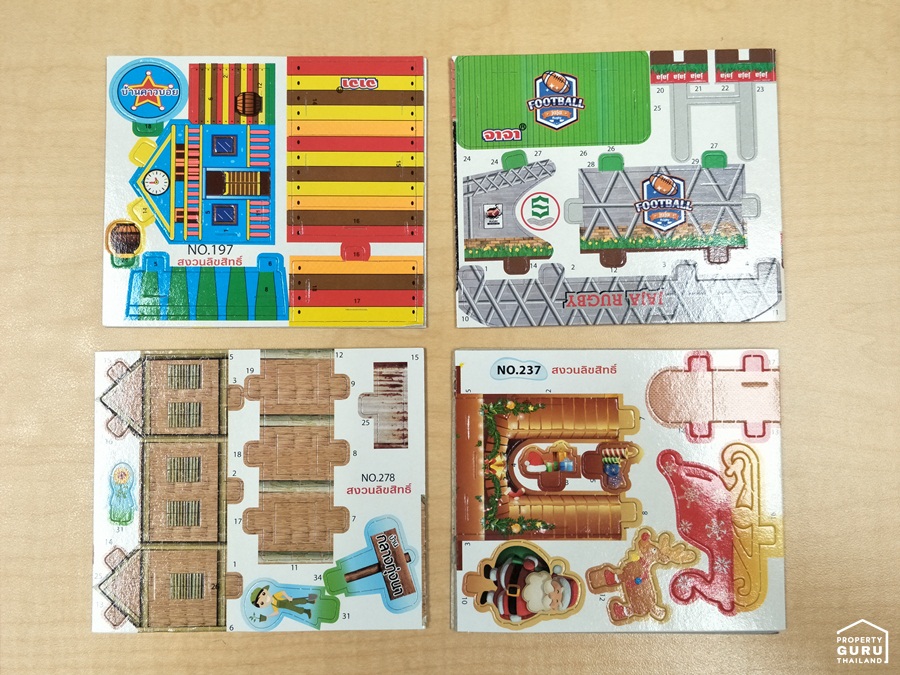 วัสดุของบ้านจาจาโฮมจะเป็นลักษณะกระดาษแข็งพิมพ์ลาย 1 ด้าน สีสันสดใสน่ารัก