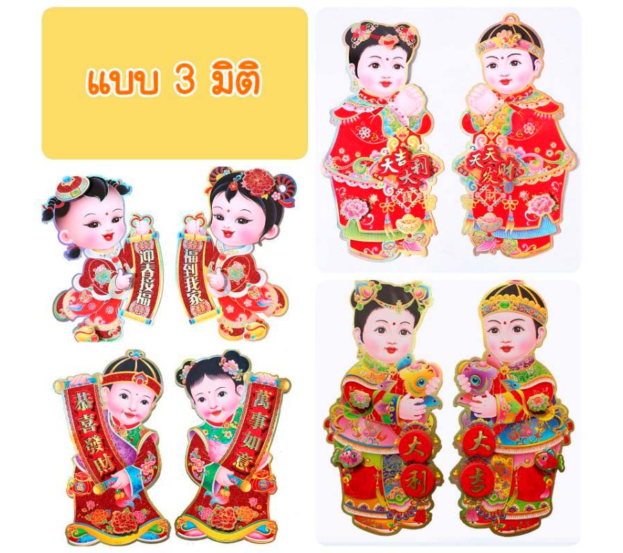 ตุ้ยเหลียนรูปเด็กพร้อมคำอวยพร มี 2 แบบ คือ 1. แบบบาง จะเป็นกระดาษอาร์ตมันพิมพ์สีทั้ง 2 ด้าน 2. แบบ 3 มิติ เป็นกระดาษแข็งพิมพ์สีประดับกากเพชร และมีป็อปอัพเสริมให้มีมิติมากขึ้น มีไซส์ให้เลือกตั้งแต่ S-XL ขนาด 8.5 x 16 เซ็นติเมตร ไปจนถึง 26 x 48 เซ็นติเมตร เริ่ม 25 - 85 บาท จากร้าน