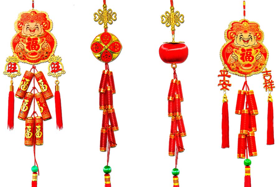โมบายประทัดแดงแบบแขวนสำหรับแต่งบ้านพร้อมความหมายคงคล มีให้เลือกหลายลาย อาทิ เทพเจ้าแห่งความมั่งคั่ง วัวนำโชค โคมไฟแดง ความยาวเริ่มต้น 76 - 111 เซ็นติเมตร เริ่ม 208 บาท จากร้าน