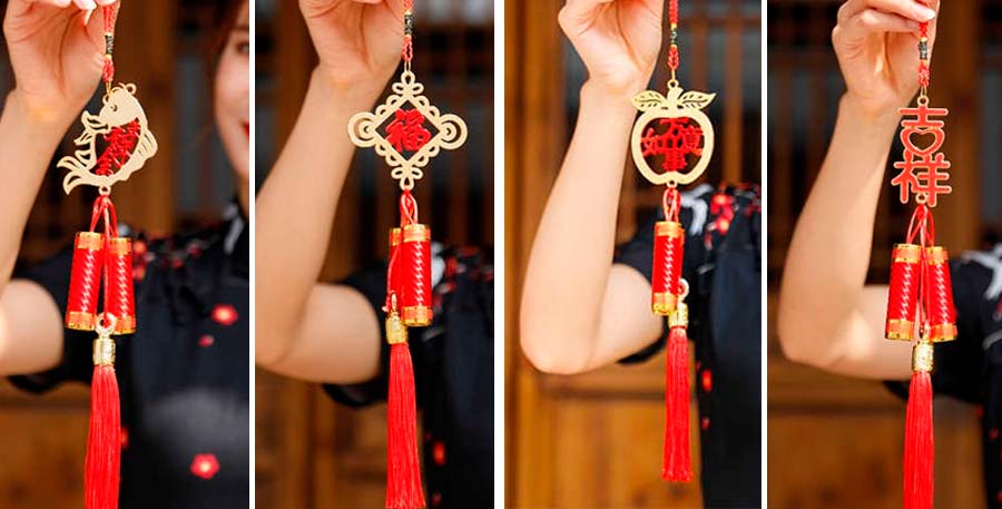 "ประทัดแดง" เป็นอีกหนึ่งสัญลักษณ์มงคลของการเฉลิมฉลองในเทศกาลแห่งความสุขความมงคลต่างๆ ของชาวจีนรวมถึงวันตรุษจีนด้วยเช่นกัน มีความเชื่อว่าเสียงดังจากประทัดจะช่วยขับไล่สิ่งชั่วร้าย สิ่งอัปมงคล และโรคภัยไข้เจ็บต่างๆ ได้ และที่ต้องเป็นสีแดงก็เพราะสีแดงเป็นสีมงคลของชาวจีน ปัจจุบันจึงมีการออกแบบของประดับตกแต่งบ้านเป็นรูปประทัดเพื่อความเป็นสิริมงคลของผู้อยู่อาศัย