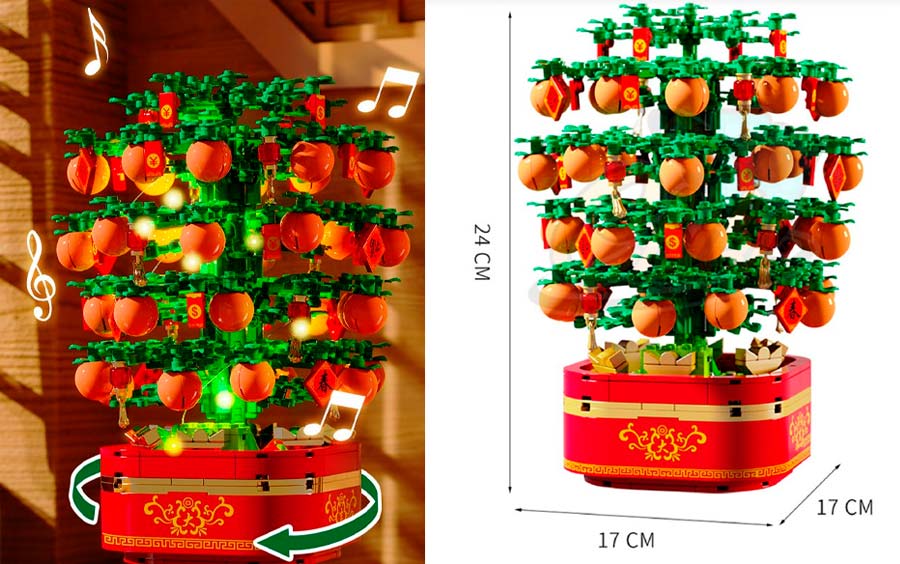 ตัวต่อเลโก้ต้นส้มเป็นกล่องดนตรี มีเสียงเพลง มีไฟ หมุนได้ เหมาะสำหรับแต่งบ้านหรือให้เป็นของขวัญฉลองวันตรุษจีน ราคา 429 จากร้าน